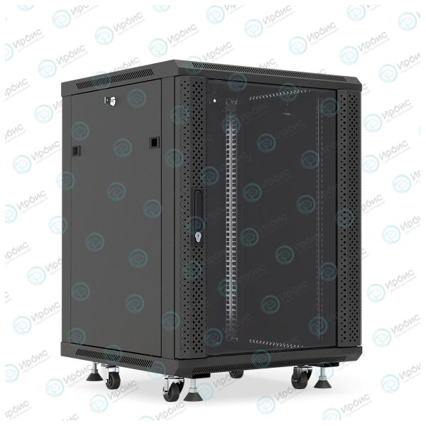 Шкаф настенный 19", 6U, 367x600х450мм, cтеклянная дверь, черный, DANNMAN WXP0645GFBK