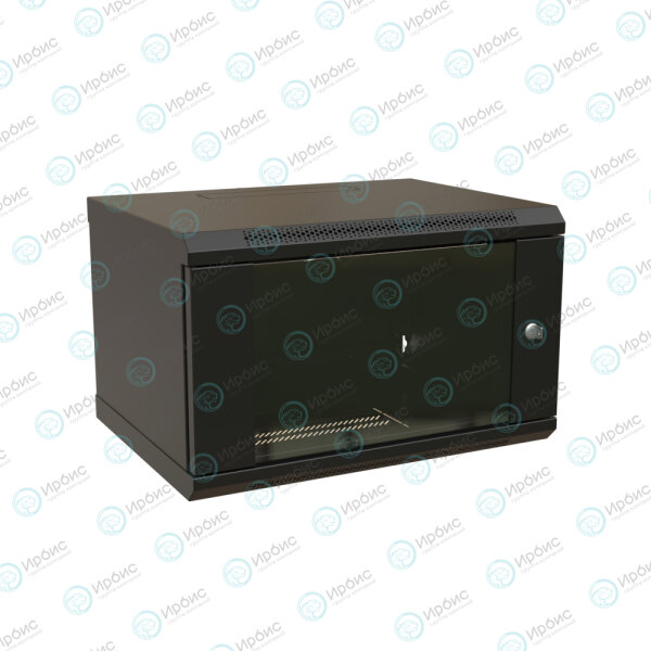 Шкаф настенный 19", 6U, 600х450мм, стекл. дверь, черный, WRline WR-TW-0645-GP-RAL9004