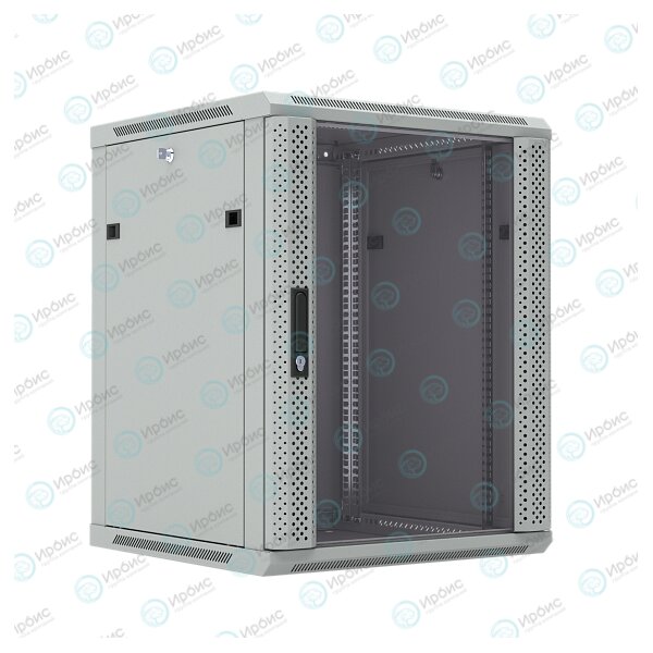 Шкаф настенный 19", 6U, 367x600х450мм, стеклянная дверь, серый, DANNMAN WXP0645GGY