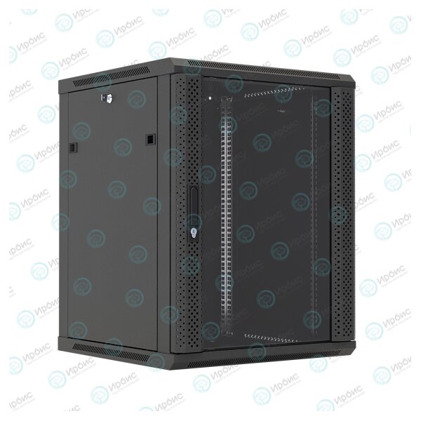 Шкаф настенный 19", 6U, 367x600х600мм, стеклянная дверь, черный, DANNMAN WXP0666GFBK
