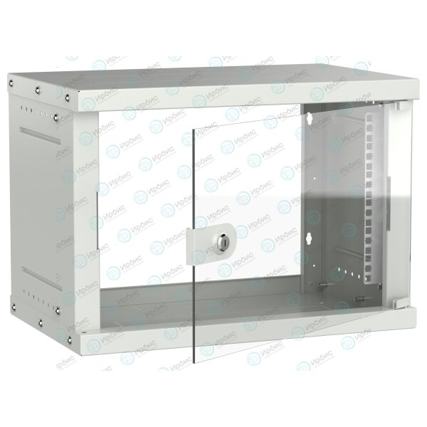 Шкаф настенный 19" 6U 550х350мм стеклянная дверь серый GENERICA