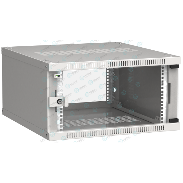 Шкаф настенный 19", 6U, 600х650мм, стекл. дверь, серый, LINEA WE, ITK LWE3-06U67-GF