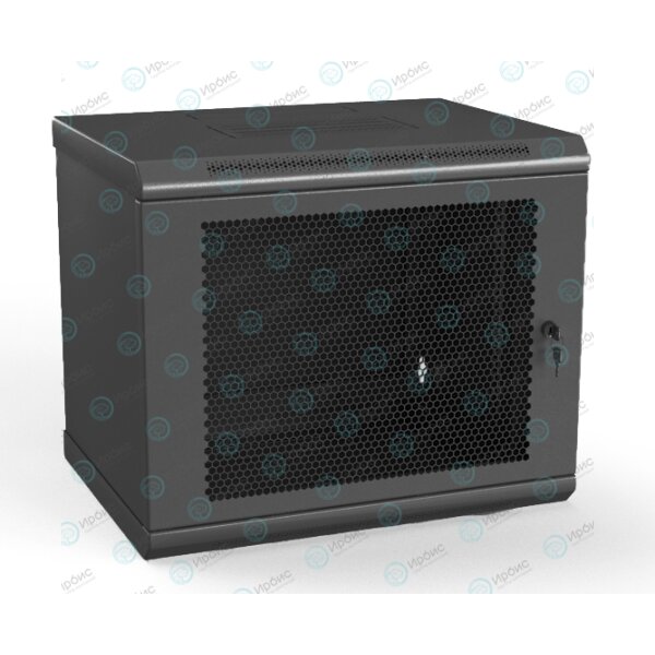 Шкаф настенный 19", 9U, 500х600х300мм, перф.дверь, черный, Hyperline TWL-0930-SD-RAL9005