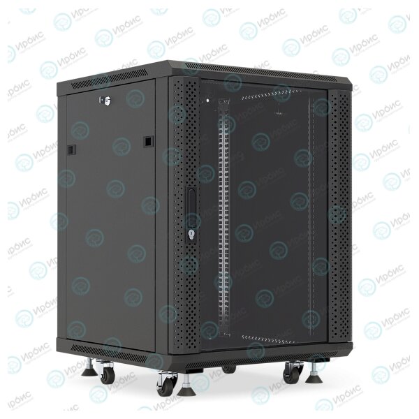 Шкаф настенный 19", 9U, 500x600х450мм, стеклянная дверь, черный, DANNMAN WXP0945GFBK