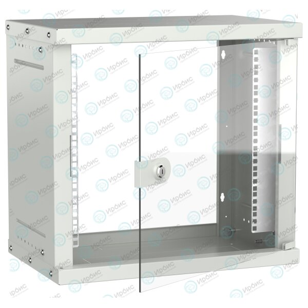 Шкаф настенный 19" 9U 550х350мм стеклянная дверь серый GENERICA