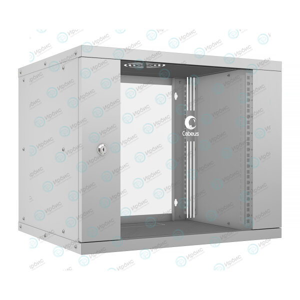 Шкаф телекоммуникационный настенный серии Light является универсальной сборно-разборной конструкцией, предназначенной для установки телекоммуникационного, электротехнического, кроссового и иного оборудования стандарта 19 дюймов (19”), в соответствии с ГОСТ 28601.2(МЭК 297-2). Шкаф представляет собой разборную конструкцию, состоящую из двух боковин, крыши, основания и передней двери. Шкаф может комплектоваться стеклянной или металлической передней дверью. Передняя дверь комплектуется точечным замком. Крыша шкафа имеет перфорацию. В крышу можно установить вентилятор Cabeus XD12038A2 на 1 модуль. Крыша и основание шкафа имеют отверстия для ввода кабеля. Вертикальные направляющие не регулируются по глубине. Боковые стенки не съемные. Оборудование располагается на вертикальных направляющих. Перфорация направляющих соответствует стандарту DIN 41494-7. На направляющие устанавливаются любые устройства в стандарте 19”. Шкаф поставляется в разобранном виде в одной упаковке.