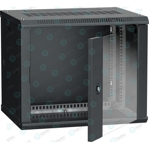 Шкаф настенный 19", 9U, 600х450мм, стекл. дверь, черный, LINEA W, ITK LWR5-09U64-GF