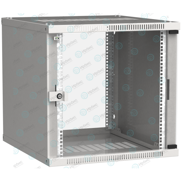 Шкаф настенный 19", 9U, 600х600мм, стекл. дверь, серый, LINEA WE, ITK LWE3-09U66-GF
