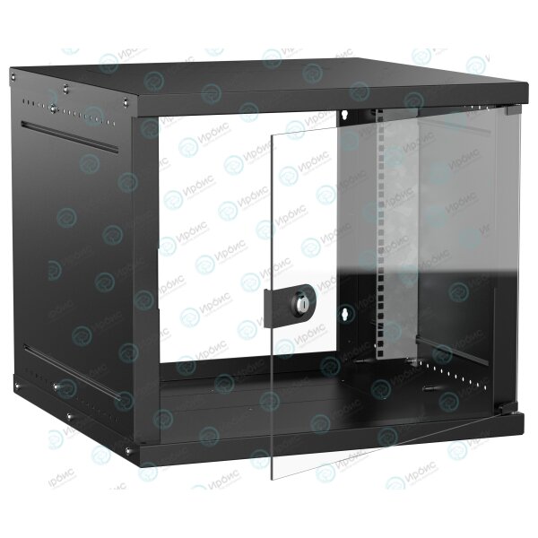 Шкаф настенный 19" 9U 600х600мм стеклянная дверь черный GENERICA