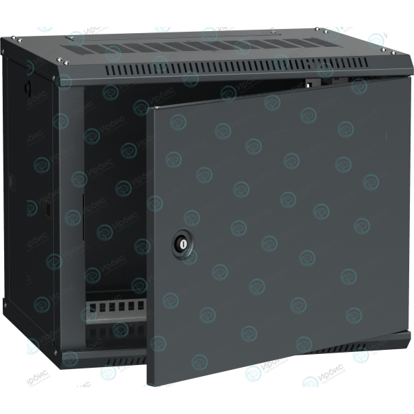 Шкаф настенный 19", 9U, 600х450мм, металл. дверь, черный, LINEA W, ITK LWR5-09U64-MF