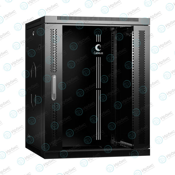 Шкаф настенный разобр. 19" 15U 600x600x769мм, дверь стекло, черный, Cabeus SH-05F-15U60/60-R-BK