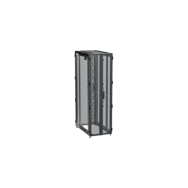 Серверный шкаф укомплектован перфорированными дверьми с площадью перфорации 86%, передняя дверь - одностворчатая, задняя - двустворчатая.