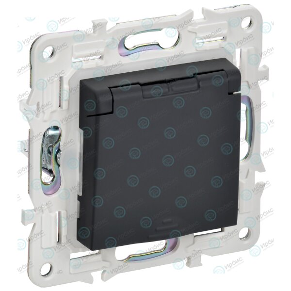 SKANDY Розетка 1-местная с заземлением с защитными шторками и крышкой 16А IP44 SK-R11G графит IEK