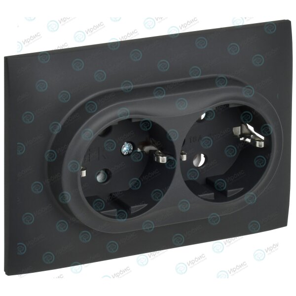 SKANDY Розетка 2-местная с заземлением без защитных шторок 16А в сборе SK-R08G графит IEK