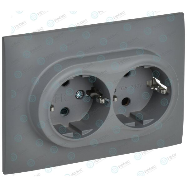 SKANDY Розетка 2-местная с заземлением с защитными шторками 16А в сборе SK-R07Gr серый IEK