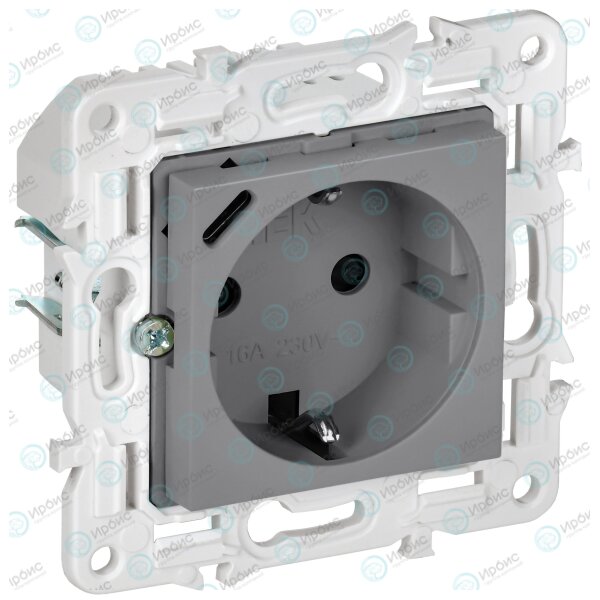 SKANDY Розетка с заземлением с защитными шторками 16А с USB C 18Вт SK-R17Gr серый IEK