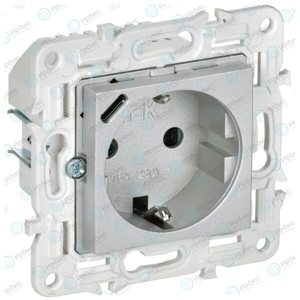 SKANDY Розетка с заземлением с защитными шторками 16А с USB C 18Вт SK-R17S серебряный IEK