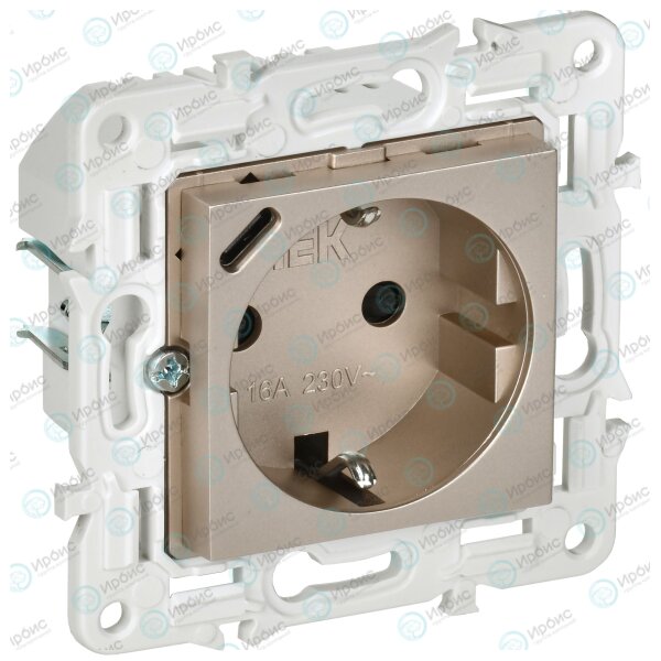 SKANDY Розетка с заземлением с защитными шторками 16А с USB C 18Вт SK-R17Sh шампань IEK
