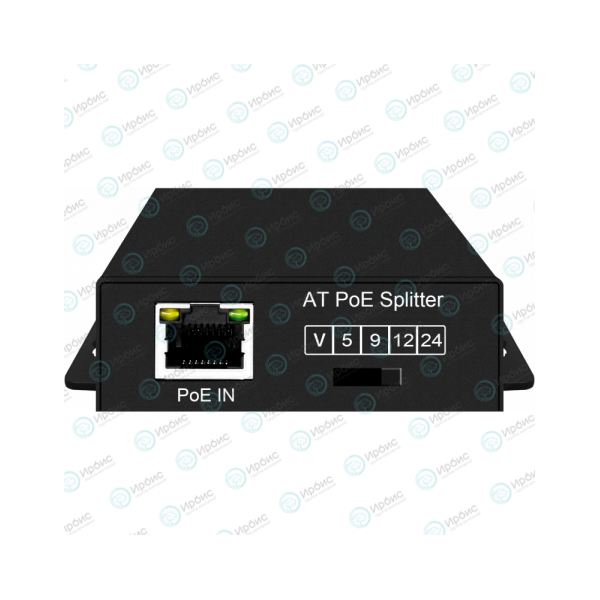 PoE-сплиттер 2,5G с выбором выходного напряжения 5/9/12/24V. Соответствует стандартам PoE IEEE 802.3af/at. Предназначен для питания сетевого оборудования без поддержки PoE. Вход - RJ45(10/100/1000/2.5G Base-T) IEEE 802.3af/at/Passive PoE (40V-57V), Выход - RJ45(10/100/1000/2.5G Base-T), штекер DC 5,5x2,1. Выходное напряжение: IEEE 802.3af(15,4W) - 5V(2,5A), 9V(1,7A), 12V(1,3A), 24V(0,64A); IEEE 802.3at(25W) - 5V(2,5A), 9V(2A), 12V(2A), 24V(1A). Переключатель выходного напряжения. Встроенная грозозащита 4kV. Встроенная электростатическая защита - 8kV. Защита от перегрузки и короткого замыкания. Металлический корпус. Размеры (ШxВxГ), 70x22x77мм. Рабочая температура -40 ... +80°C.