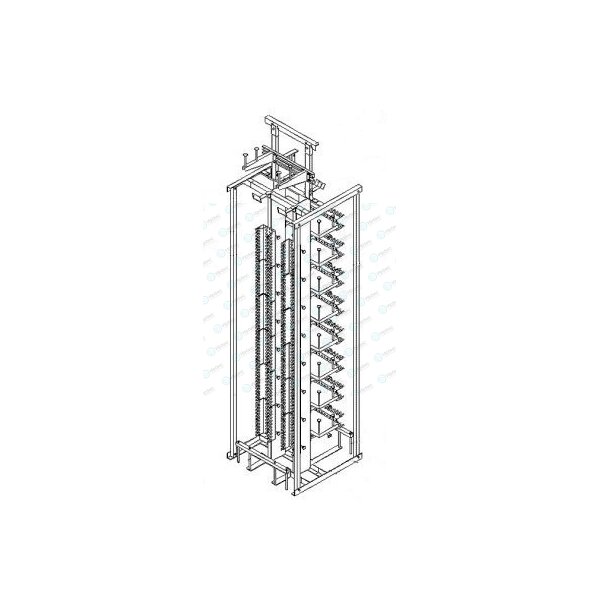 Кроссовая стойка КСДО-2-ХМ-1200/1200 выполнена по традиционной схеме расположения линейной (вертикальные ряды) и станционной (горизонтальные ряды) сторон и рассчитана на установку 10-парных плинтов.
