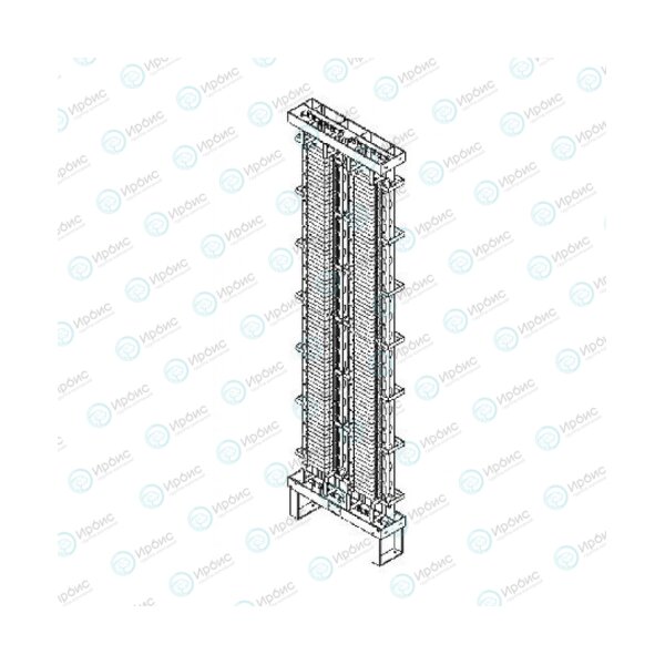 Представляет собой 2 вертикальных кабельных канала с конструктивными элементами для прокладки кабелей и кроссировочных проводов и установочными плоскостями для крепления рядных держателей плинтов типоразмера Krone.