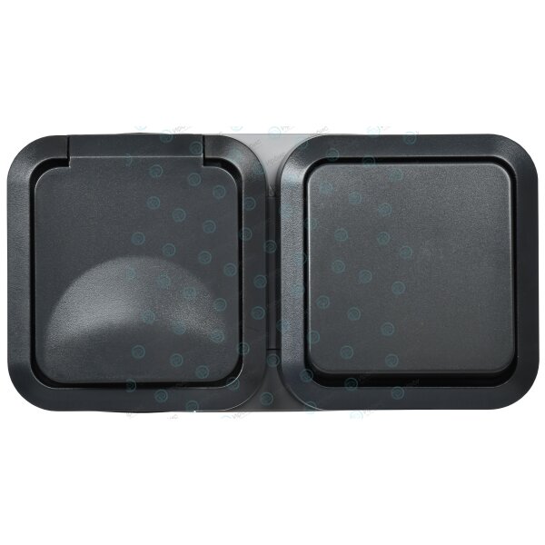 TORS Блок розетка + выключатель горизонтальный 16А IP55 TS142 графит IEK