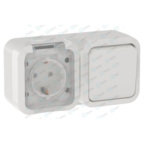 TORS Блок розетка + выключатель горизонтальный 16А IP55 TS342 белый IEK