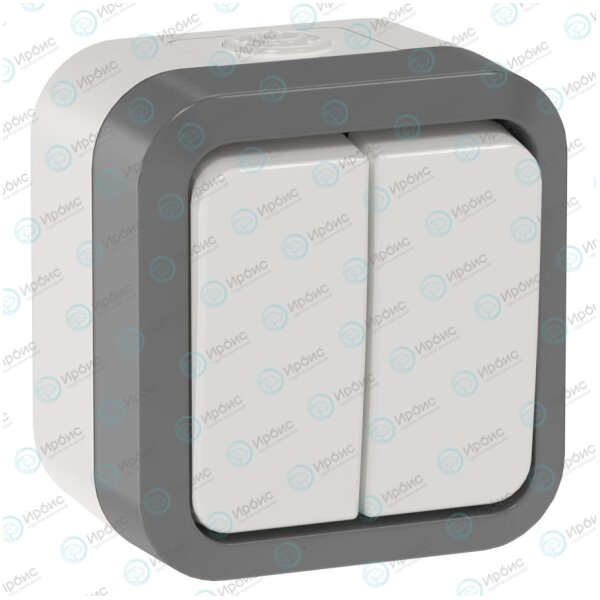 TORS Выключатель двухклавишный проходной 10А IP55 TS225 сер-бел IEK