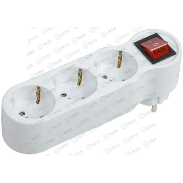 Тройник Т-01/03В 3 места с заземлением 16А с выключателем белый IEK