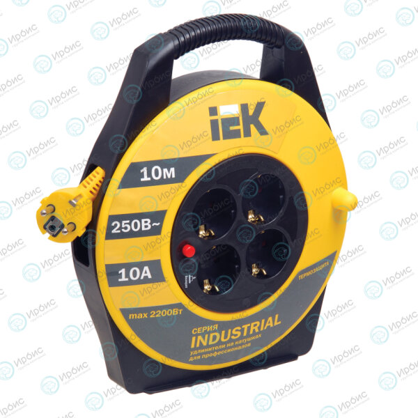 Удлинитель на катушке с т/з, 4 места, 2Р+PЕ/10м, 3х1,0мм2, IEK WKP14-10-04-10