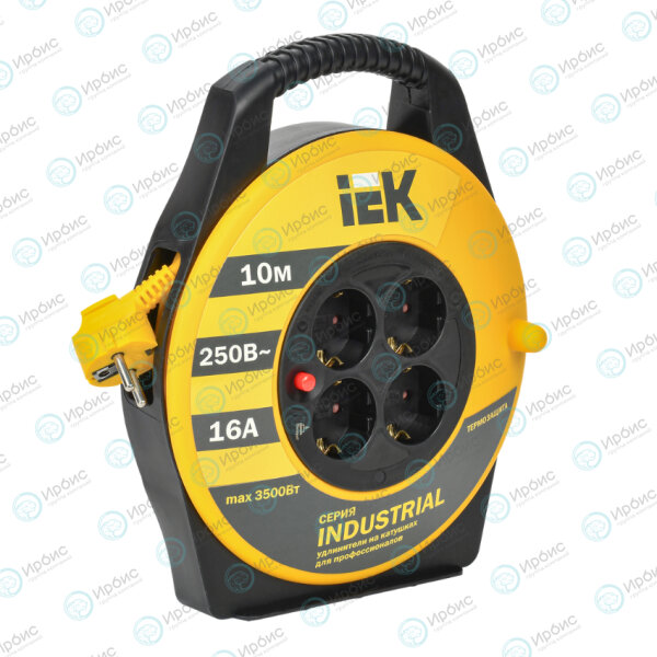 Удлинитель на катушке с т/з, 4 места, 2Р+PЕ/10м, 3х1,5мм2, IEK WKP15-16-04-10