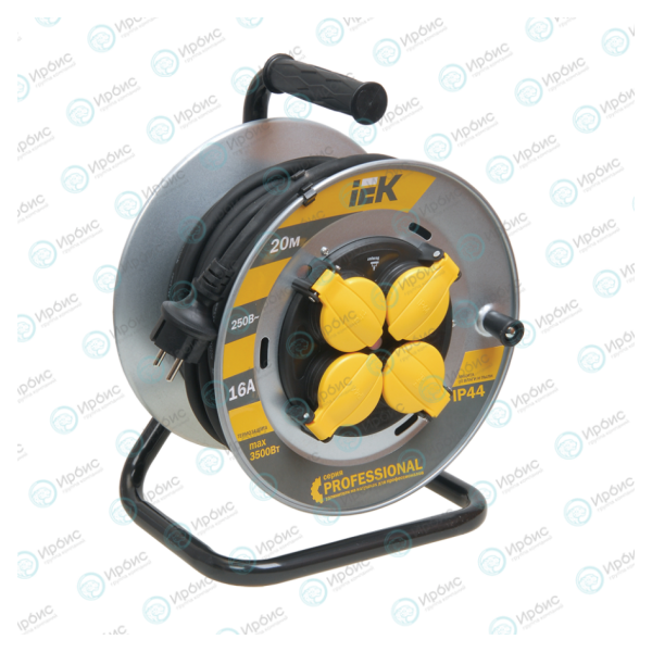 Удлинитель на катушке с т/з, 4 места, 2Р+PЕ/20м, 3х1,5мм2, IP44, IEK WKP16-16-04-20-44
