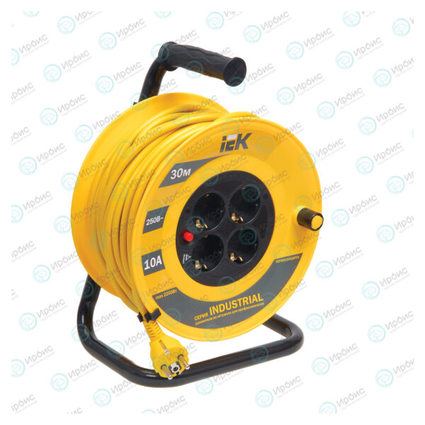 Удлинитель на катушке с т/з, 4 места, 2Р+PЕ/30м, 3х1,0мм2, IEK WKP14-10-04-30