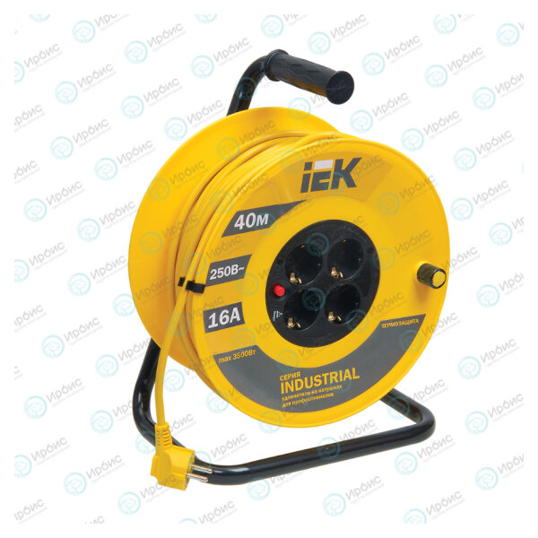 Удлинитель на катушке с т/з, 4 места, 2Р+PЕ/40м, 3х1,5мм2, IEK WKP15-16-04-40