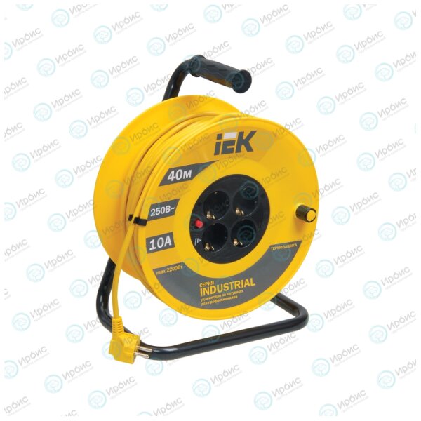 Удлинитель на катушке с т/з, 4 места, 2Р+РЕ, ПВС 3х1мм2, 40м, IEK WKP14-10-04-40