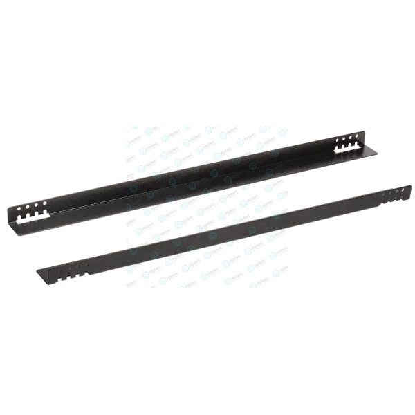 Направляющие (опорные) уголки предназначены для установки в шкаф или стойку тяжелого оборудования или серверов при этом уголки либо полностью принимают всю нагрузку на себя в случае, если оборудование нет возможности закрепить на 19" монтажные профили, либо выполняет дополнительную поддерживающую функцию, если оборудование монтируется на монтажные профили. Кроме того, за счет своей конструкции уголки не создают препятствие выводимому из оборудование горячему воздуху и способствуют лучшему охлаждению. Направляющие уголки изготавливаются из стали толщиной 2 мм, при монтаже в шкафу фиксируются на передние и задние 19" монтажные профили сбоку, не занимая полезной высоты.