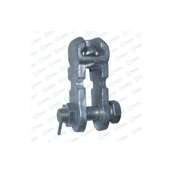 Ушко двухлапчатое предназначено для соединения стержня подвесного изолятора или серьги с другой линейной арматурой. Для запирания стержня изолятора или пестика серьги в гнезде ушки комплектуются W-образными замками.