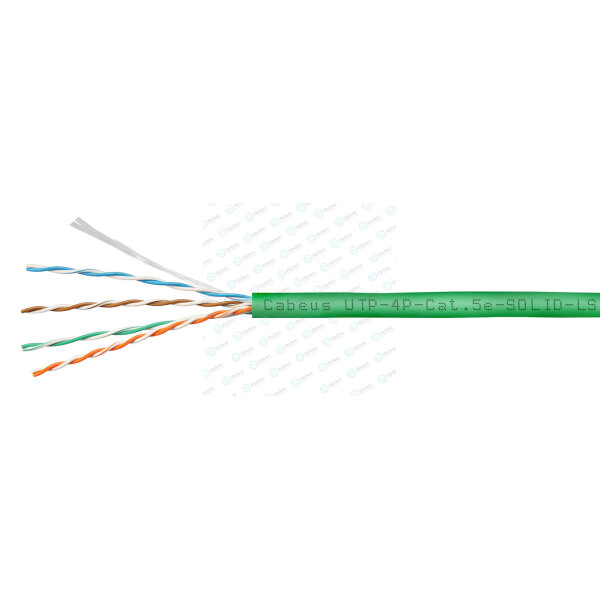Кабель UTP 4 пары, Кат.5е, внутр., 0,50мм, LSZH, зелен., 100м, Cabeus UTP-4P-Cat.5e-SOLID-LSZH-GN-100