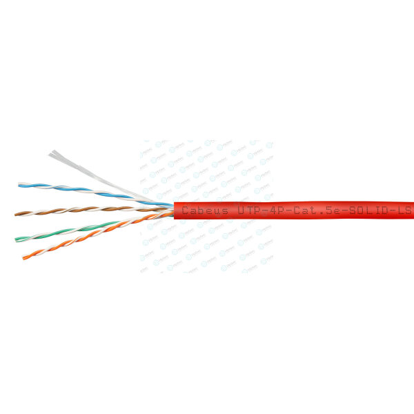 Кабель UTP 4 пары, Кат.5е, внутр., 0,50мм, LSZH, красный, 100м,Cabeus UTP-4P-Cat.5e-SOLID-LSZH-RD-100