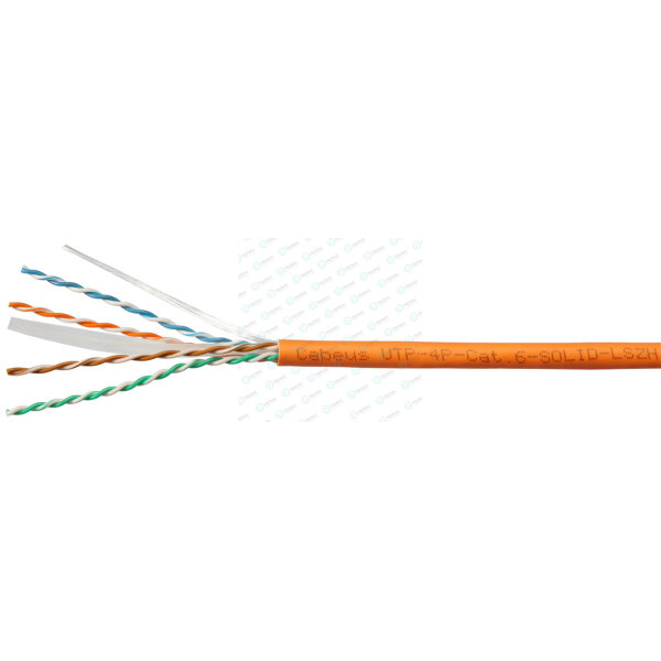 Кабель UTP 4 пары, Кат.6, внутр., 0,57мм, LSZH, оранж., 100м, Cabeus UTP-4P-Cat.6-SOLID-LSZH-100