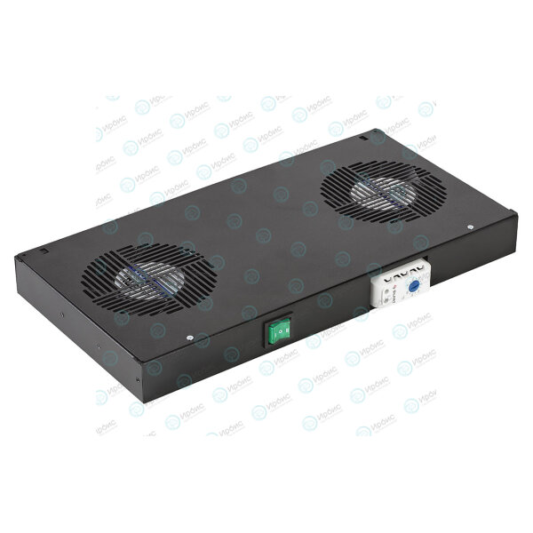 Модуль вентиляторный ВМ-2-19"-Т-Ч, 2 вентилятора с термореле, черный, ССД 130411-01258