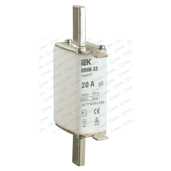 Вставка плавкая предохранителя ППНИ-33, габарит 0, 20А, IEK DPP20-020
