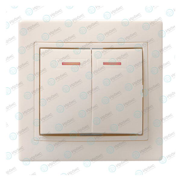 Выключатель 2-клавишный с индикацией, 10А, ВС10-2-1-ККм, кремовый, IEK EVK21-K33-10-DM