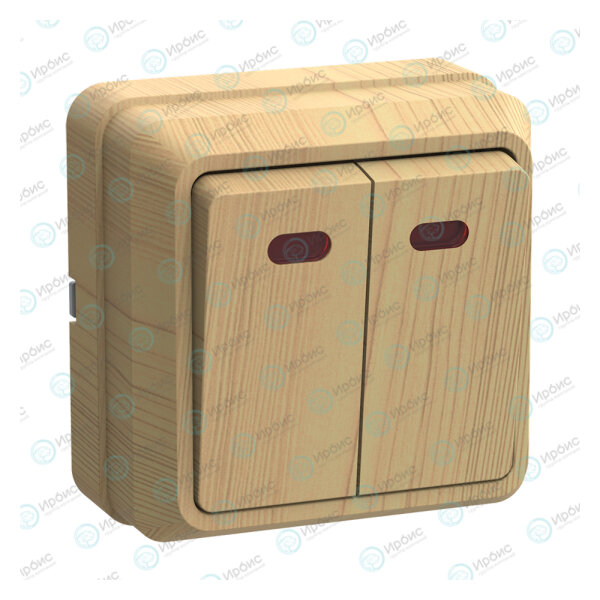 Выключатель 2-клавишный с индикацией, 10А, ВС20-2-1-ОС, сосна, IEK EVO21-K03-10-DC