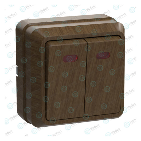 Выключатель 2-клавишный с индикацией, открытой установки, 10А, ВС20-2-1-ОД, дуб, IEK EVO21-K04-10-DC