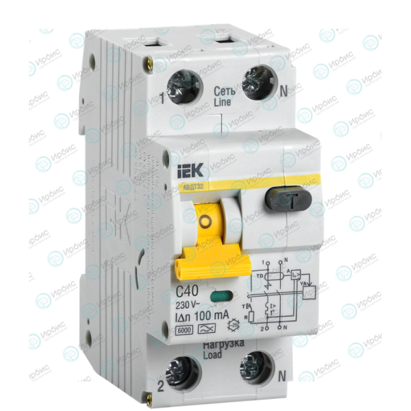 Выключатель автоматический АВДТ 32 C40, 100мА, тип A, IEK MAD22-5-040-C-100