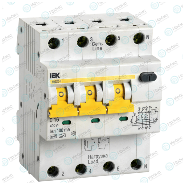 Выключатель автоматический АВДТ 34 C16, 100мА, тип A, IEK MAD22-6-016-C-100