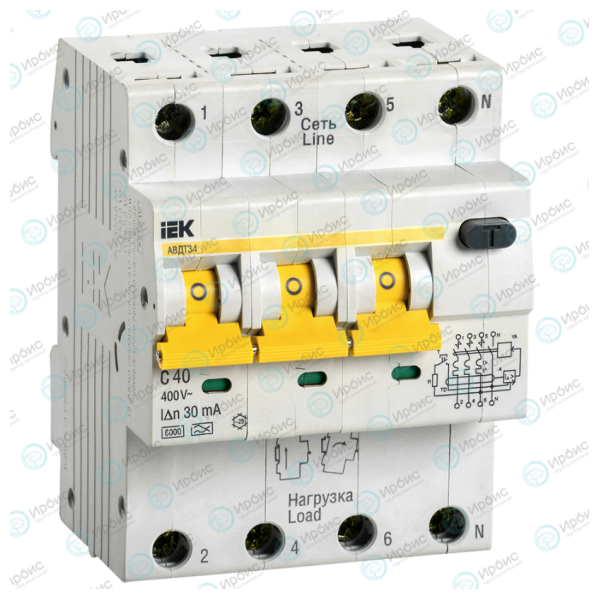 Выключатель автоматический АВДТ 34 C40, 30мА, тип A, IEK MAD22-6-040-C-30