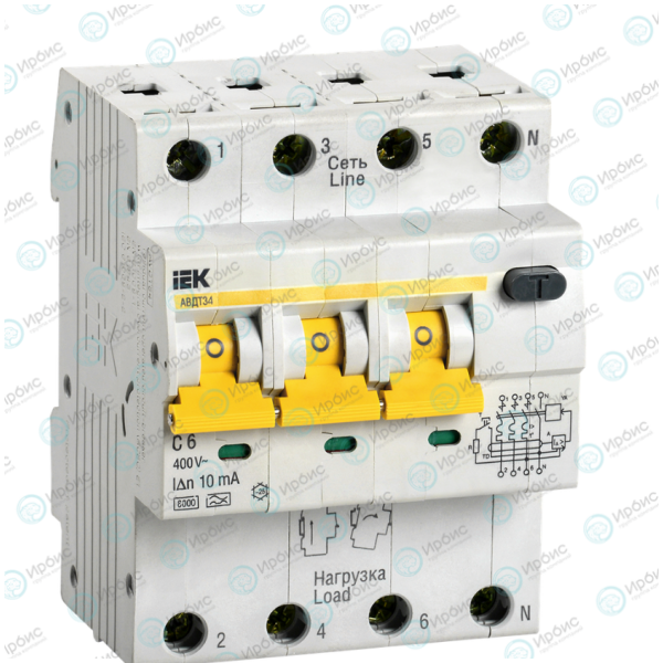 Выключатель автоматический АВДТ 34 C6, 10мА, тип A, IEK MAD22-6-006-C-10