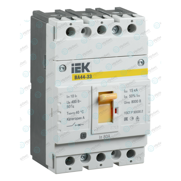 Выключатель автоматический ВА44 33 3Р 80А 15кА, IEK SVA4410-3-0080